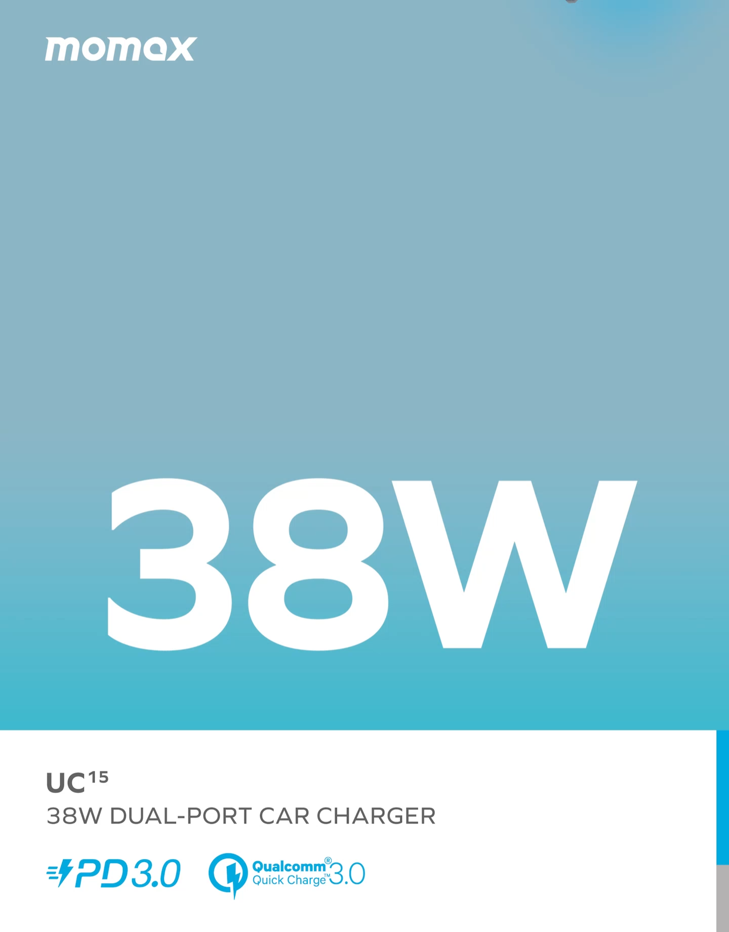 38W output (max.) | QC3.0 and PD port deliver in a max. of 38W total output