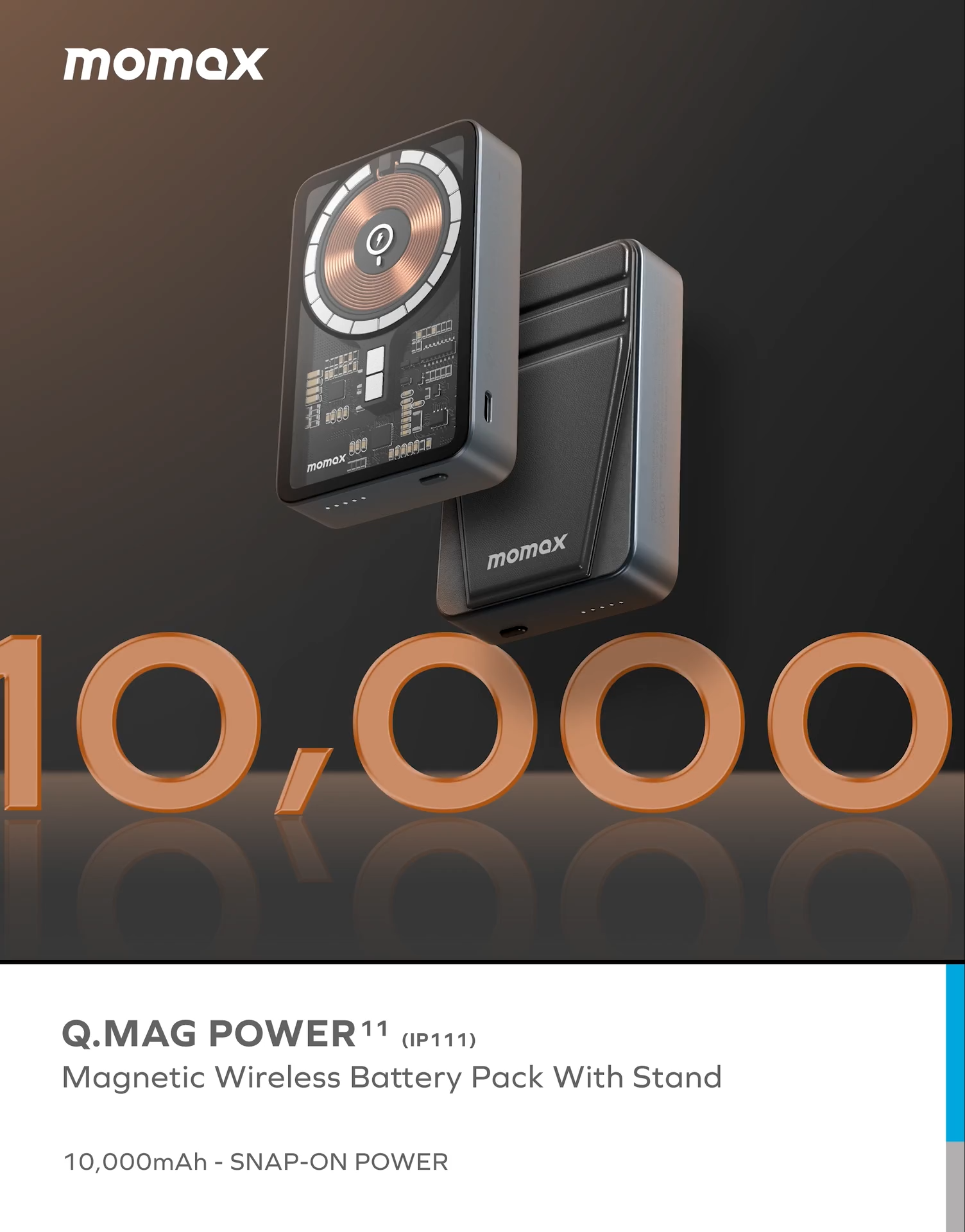Get ready to power up your devices with the Q.Mag Power 11, the ultimate charging companion for your busy lifestyle. With a massive 10,000mAh battery capacity, it supports wireless charging for iPhone 12/13/14 series and other Qi-enabled devices up to 15W, with a PD output of up to 20W. The foldable stand provides flexible viewing orientation for users, while the industrial design with a transparent glass front that displays the inner component of the battery pack and the aluminium alloy body gives a premium metallic touch.